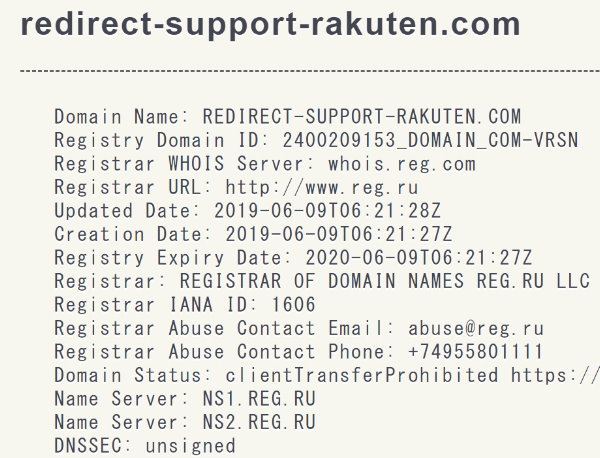 redirect-support-rakuten.com のwhois情報。