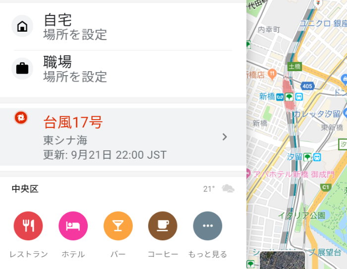 Googleマップ見てたら、「台風17号」だって