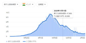 インドでは、半数程度の人が一度感染を経験しているので、もう未知のウィルスではない。