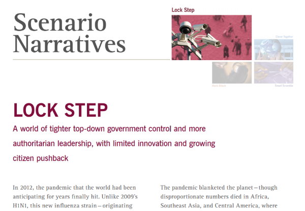 2010年にロックフェラー財団が発行した未来のシナリオ