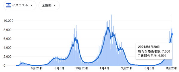 この比較は簡単で、ワクチン接種率60%を超えるイスラエル。