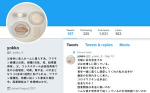 【拡散希望】yokkoさんワクチン接種後??お母さんが脳梗塞になりお父さんが至る所に血栓ができ亡くなってしまった。医師が因果関係は無いと言う事に全く納得いかないとツイートした所、アカウントが削除されてしまった。ワクチン推進に突き進む影で死亡者や重篤者を隠蔽し報道しない国日本??