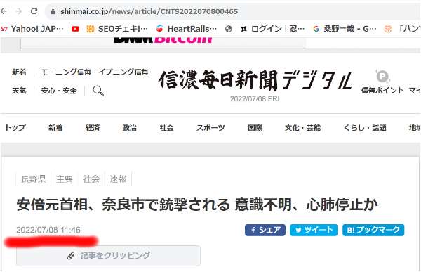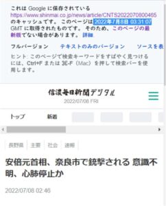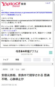 山上徹也の犯行はYahooニュースで2日前に報じられていた計画的犯行!?日付の証拠画像とデマ説を検証。報道記者は銃撃事件を知ってた?