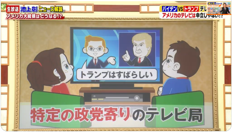 助手: マジで!? でも放送法のあるテレビでも偏向報道してるじゃん。 池上さん自身がテレビで適当な解説してるって指摘されてるのに。
