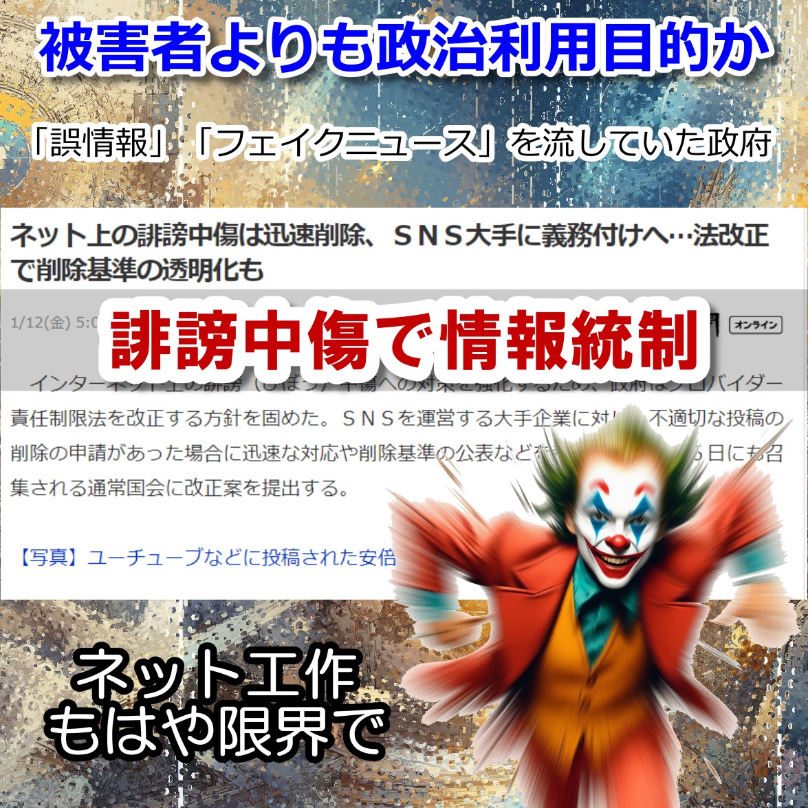 中傷被害者を利用して情報統制を狙うか。