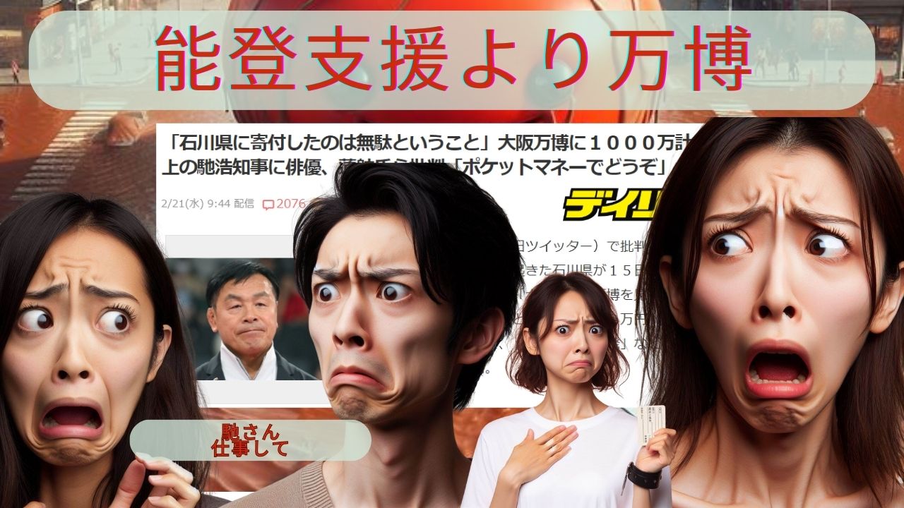 - 馳知事の大阪万博への寄付に対し、復興への寄付がより適切だったのではないかとの不満が表明されています。