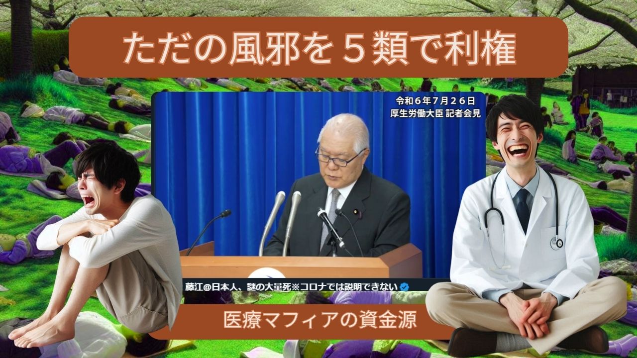 なんとただの風邪すら5類とし、医療マフィアの資金源に。