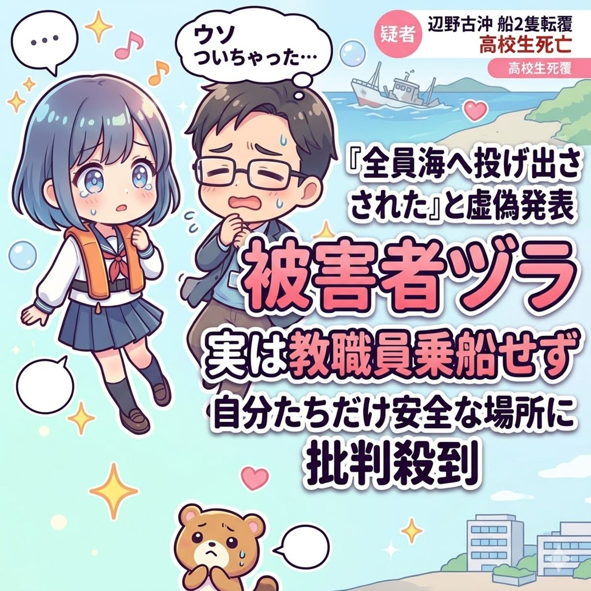 「教職員全員が海に投げ出された」と虚偽発表