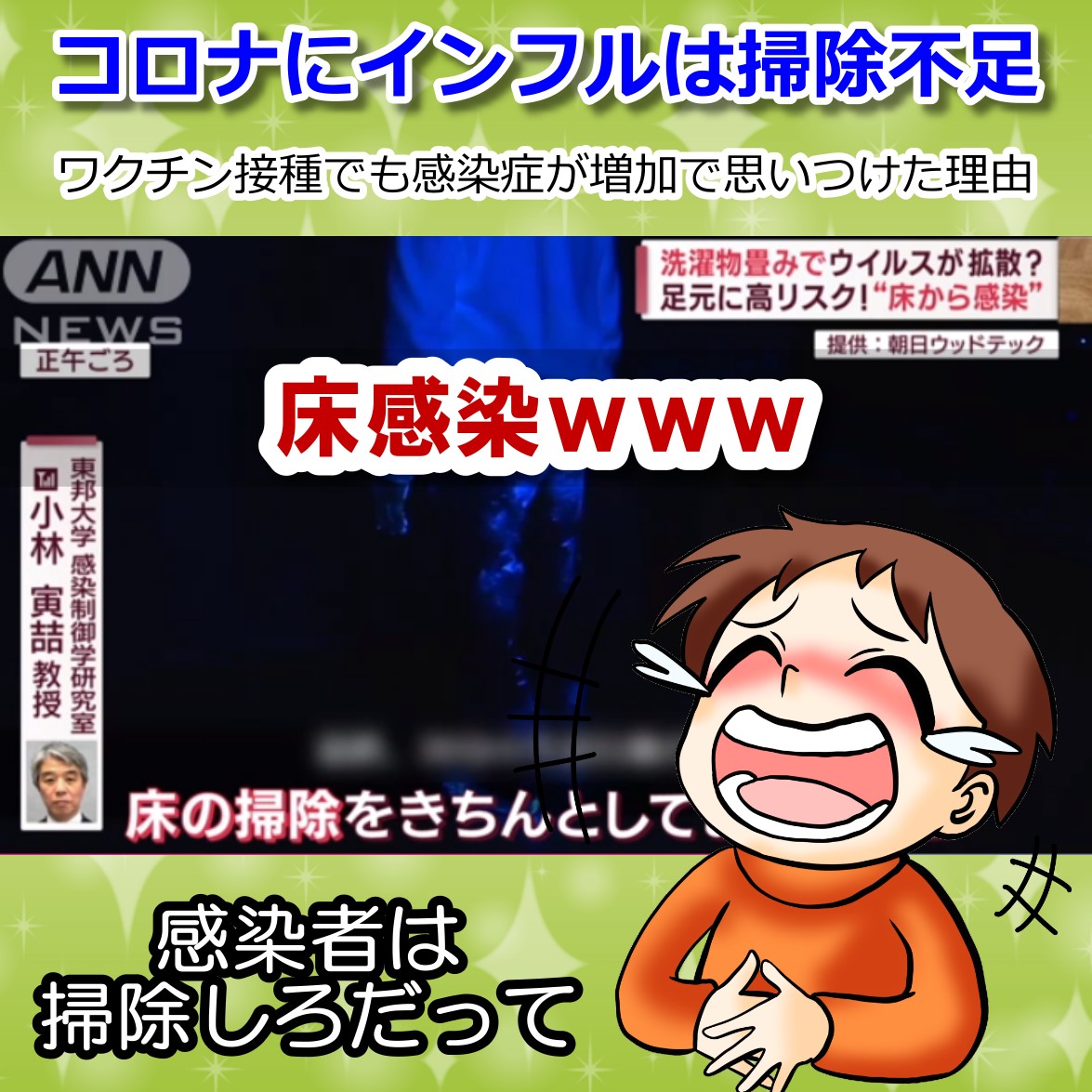 “2回目インフル”患者が急増 洗濯物畳みでウイルスが拡散?足元に高リスク! https://news.tv-asahi.co.jp/news_society/articles/000325262.html?display=full… いわゆる“床感染”だってさ