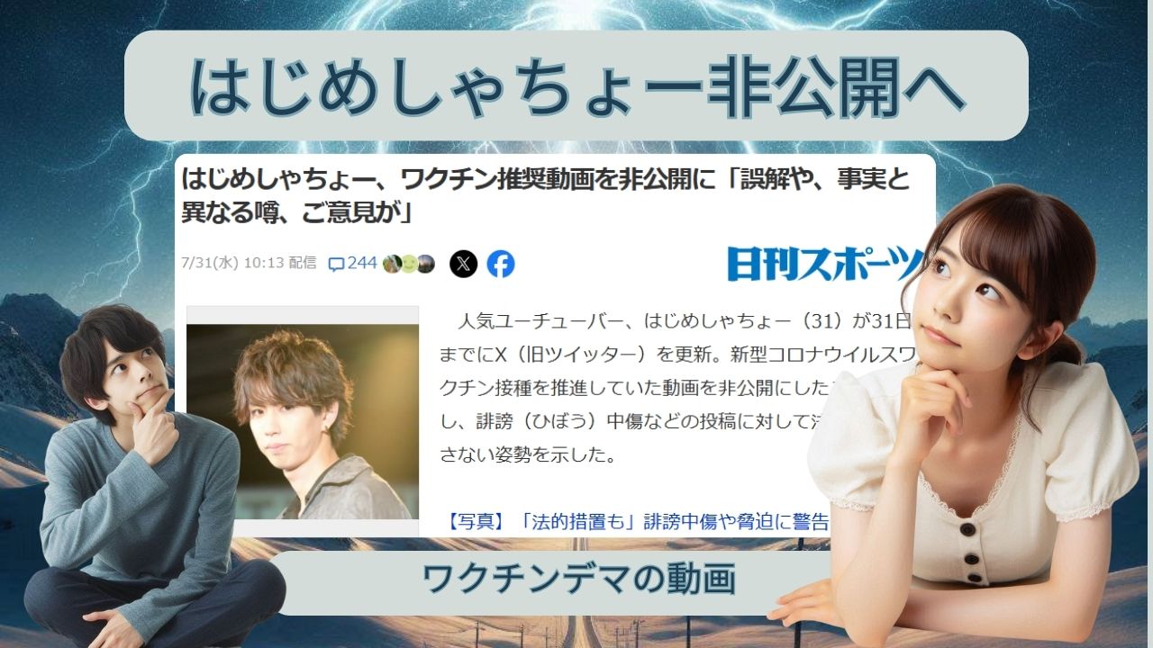 - 情報公開・訂正を求める声: ワクチンの危険性に関する情報が隠蔽されている可能性を指摘し、はじめしゃちょーには事実を認め、訂正するよう求める声が上がっています。