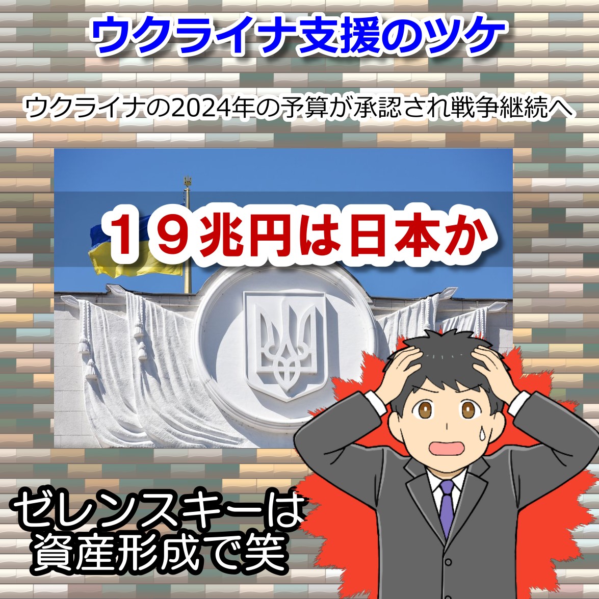 日本が保証する13億4000万ドルの支援金がウクライナに間もなく到着 430億ドル以上の赤字を抱える2024年の国家予算案に署名 また今後・日本等の同盟国から300億ドル以上の金融支援を受ける必要があると述べている そのため資金を捻出するのに皆さんから今後・搾り取りますのでヨロシクです