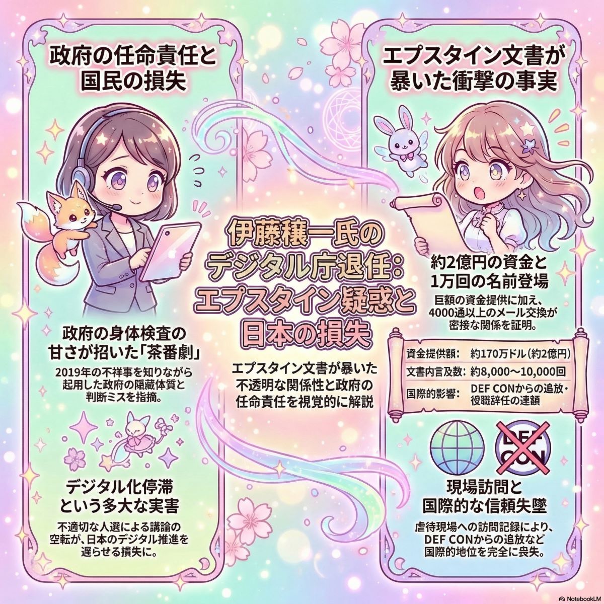 さらに、エプスタインがハッカーを雇って情報収集を行っていた記述のなかに伊藤氏の名前が関連していることは、デジタル社会の推進者としての適格性を完全に否定する致命的な矛盾です。