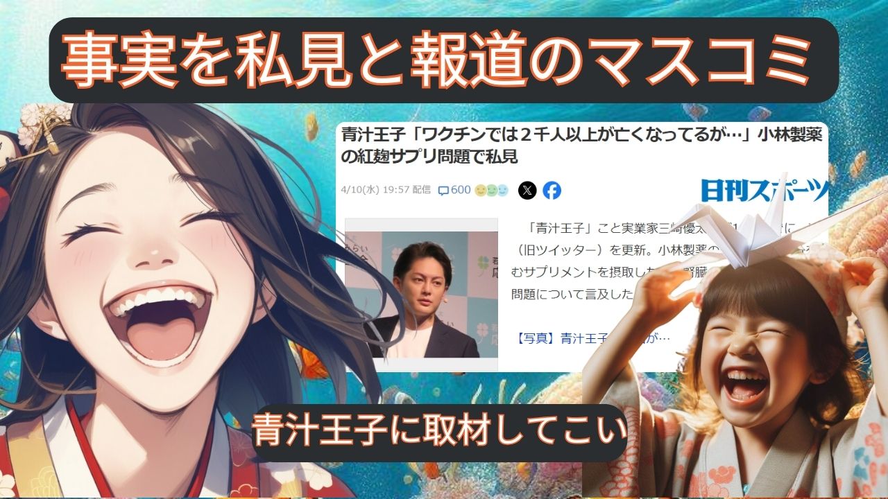 青汁王子のワクチンによる2000人以上の死亡報告を「私見」としか伝えられないマスゴミ。