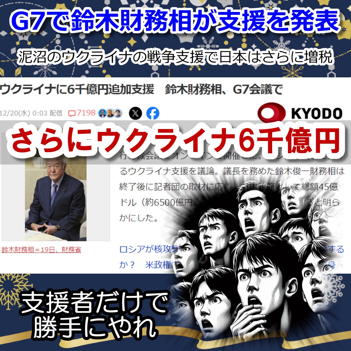 ウクライナがんばれ!なんて寄付してた連中だけでやってくれ。