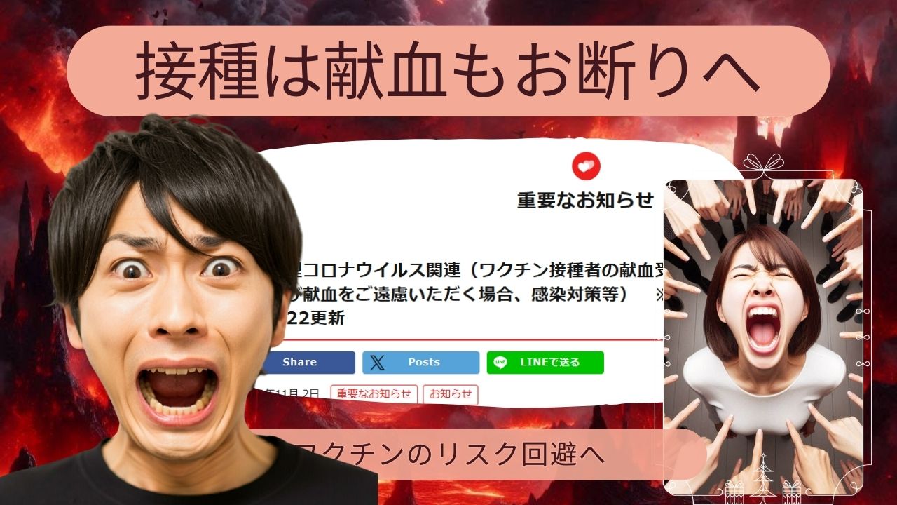 語り手: ワクチン接種者の献血お断りって、マジで!? レプリコンワクチンってやつがヤバいらしいぜ。 日本だけが承認したんだってよ。