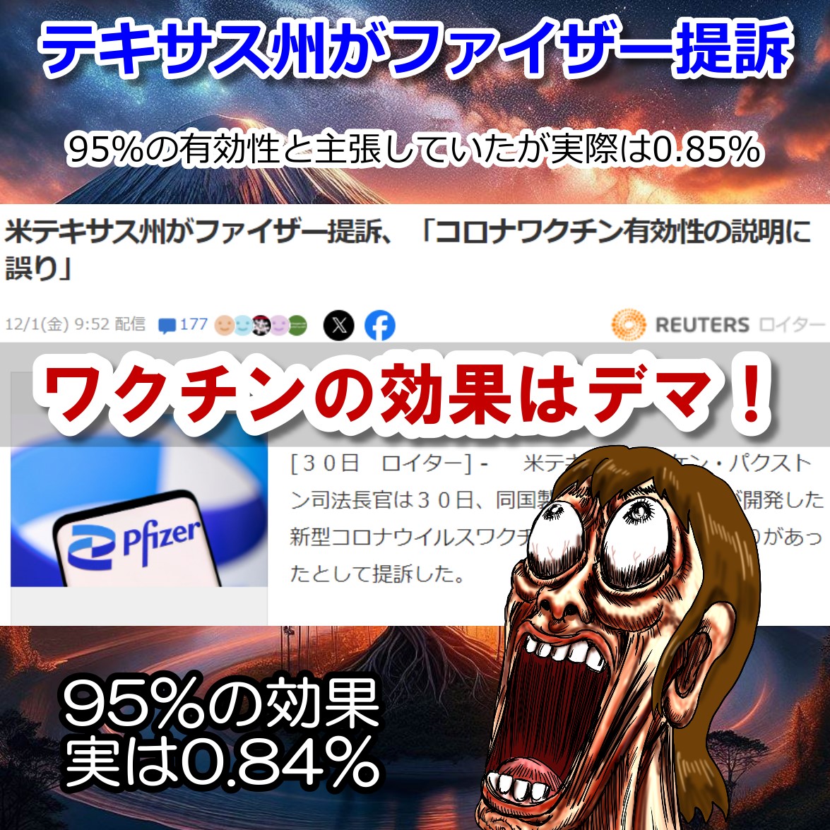 95%の効果はデマ! テキサス州がファイザーを提訴